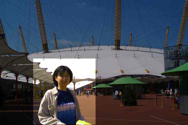 Keiko in London, Greenwich, in front of the Millennium Dome.
